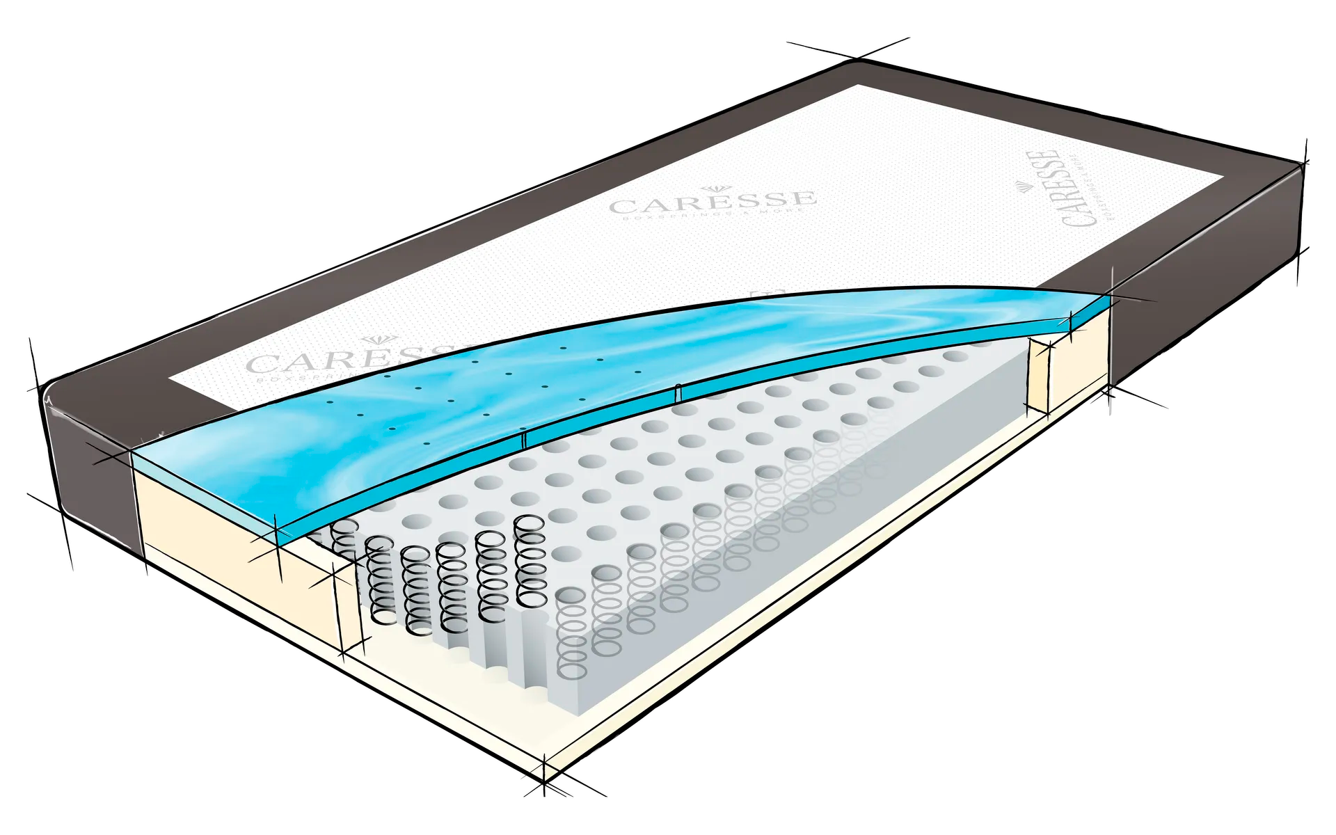 Caresse gebruikt drie typen matrassen die elk op hun eigen manier comfort bieden. De verschillen zitten vooral in de hoeveelheid veren, de manier van reageren op druk én de opbouw van de comfortzones.
