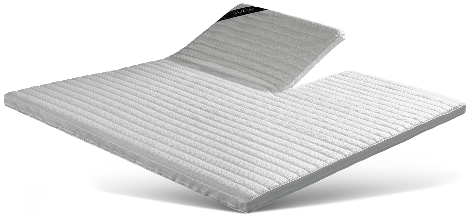 Veel Caresse toppers hebben een schuimbasis, maar de tijken zijn vaak rijk en dik doorgestikt. Daardoor kan er na verloop van tijd lichte contourvorming zichtbaar worden: het materiaal vormt zich subtiel naar jouw lichaam. Dit is normaal en hoort bij het gebruik van kwalitatieve, meebewegende materialen. Het zegt niets over de ondersteuning — het is puur een visueel en licht voelbaar afdrukje van hoe jij slaapt.