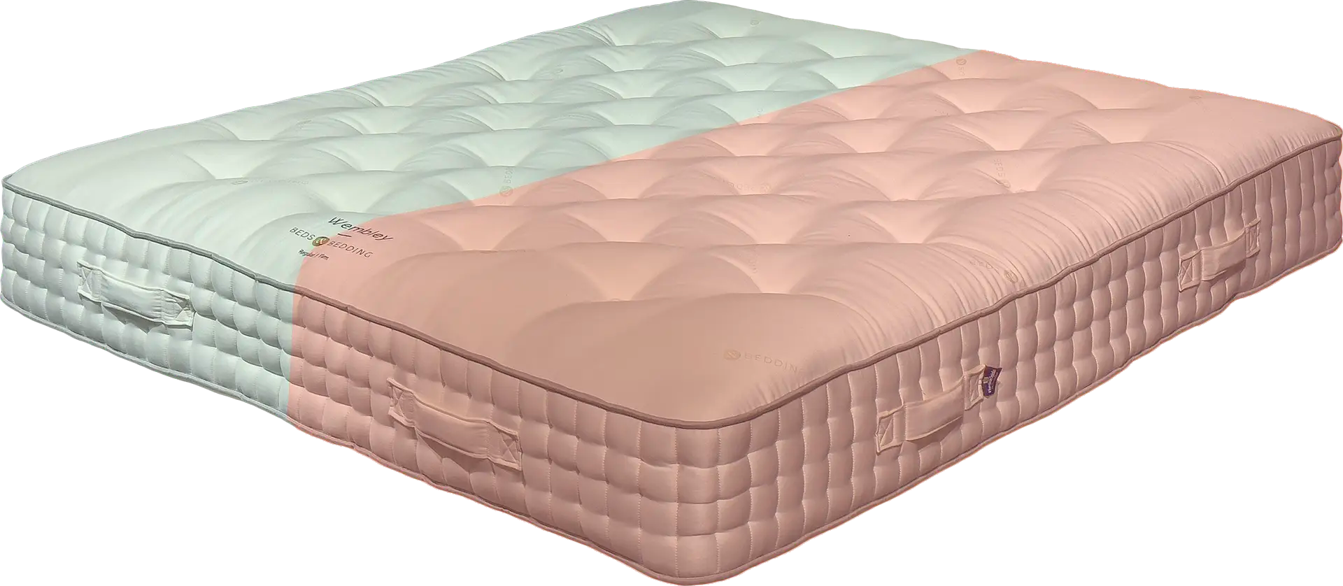 Het Natural Wembley matras biedt een verfijnde combinatie van natuurlijke materialen en ambachtelijke ondersteuning. Dit showroommodel van 180 × 210 cm heeft een partneropstelling met één zijde medium en één zijde firm – ideaal voor koppels met een verschillend slaapcomfort.