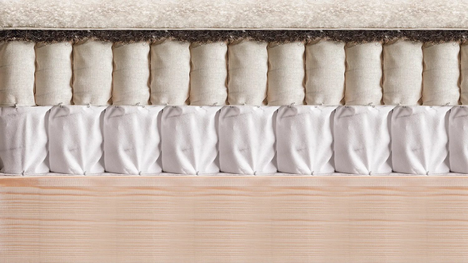 Elke Vispring Signatory Boxspring is opgebouwd met oog voor detail en gemaakt van uitsluitend de beste natuurlijke materialen. Van het massief houten frame van de boxspring tot de handgeneste pocketveren en luxueuze vullingen van de matras — alles is ontworpen voor optimaal comfort en duurzaamheid.